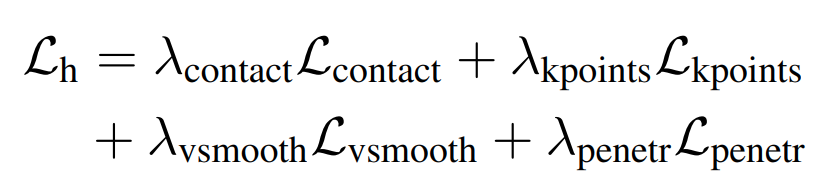 - : hand–object penetration penalty