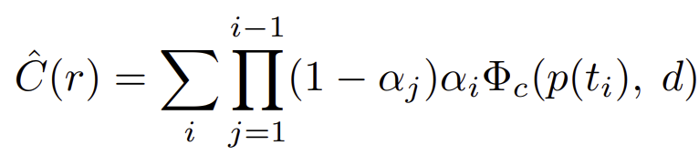 - 각 픽셀에서 camera ray를 따라서 set of points를 샘플링