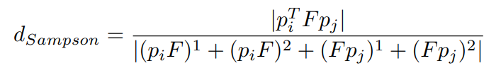- 대응점 쌍 이 현재 camera pose로 정의된 epipolar geometry를 얼마나 위반하는지 측정
