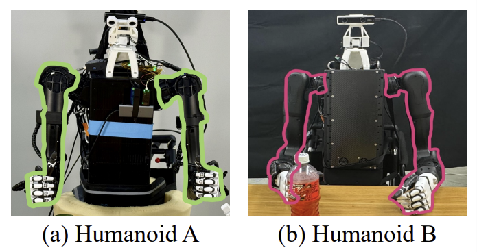 - Humanoid B: Unitree H1 2 (다른 arm configuration)